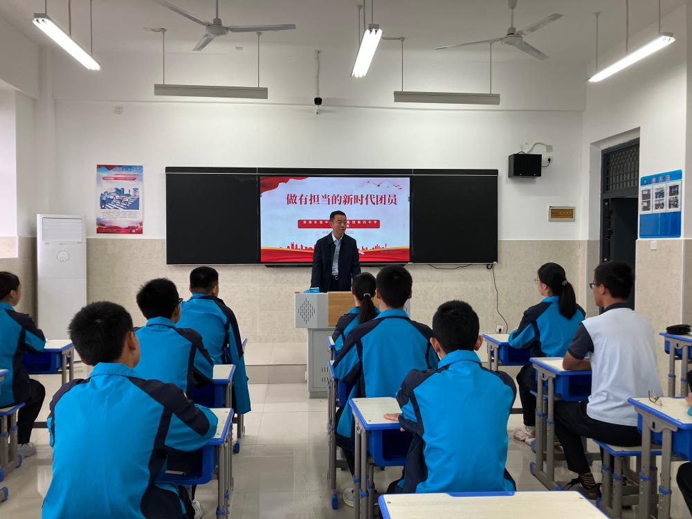 随后,学校党支部书记、校长陈晓虎发表讲话。他围绕 “共青团的使命与青年担当”展开分享,深刻解读共青团作为党的助手和后备军的重要角色,强调青年一代应将个人成长与国家发展紧密结合。陈校长对全体入团积极分子提出殷切期望:希望大家以团课学习为契机,将 “爱国、爱党、爱校” 的信念融入日常学习与生活,在知识学习中坚定理想,在实践行动中锤炼品格,努力成长为有理想、敢担当、能吃苦、肯奋斗的新时代好青年。陈校长的讲话既有思想高度,又贴近学生实际,赢得现场阵阵掌声。