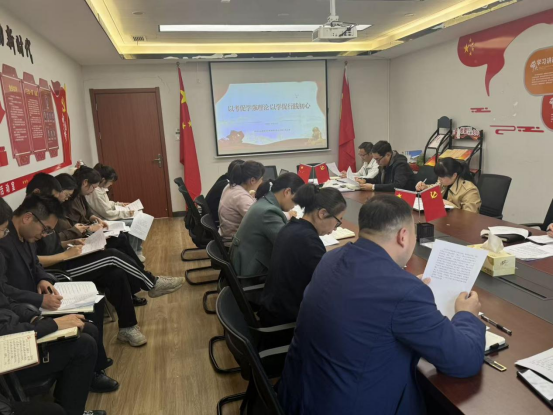 活动现场氛围严肃而热烈。党员们提前认真复习全会报告、辅导读本等资料,测试过程中,大家全神贯注、认真作答,时而提笔思索,时而快速书写,充分展现出扎实的理论学习功底和积极向上的学习风貌。测试结束后,由支部委员带头解读、党员互相答疑,进一步理清思路、深化理解,真正做到 “答一题、学一点、懂一片”。