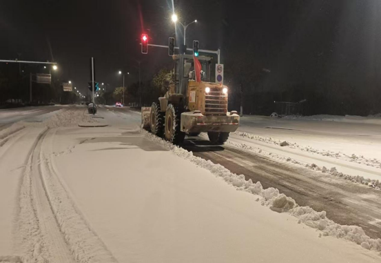 迎寒而上,党旗飘扬战一线。在指定的责任路段,积雪厚重,部分区域已凝结成冰,给清扫工作带来不小挑战。公司领导身先士卒,挥锹破冰,党员同志们干劲十足,配合默契。有的负责用铁锹将坚冰砸碎,有的负责用雪铲将积雪推至路边,有的负责播撒融雪剂防止二次结冰。尽管寒风刺骨,但大家热情高涨,现场一片热火朝天的景象。鲜艳的党旗和“党员突击队”队旗在雪白的世界中格外醒目,成为一道亮丽的风景线。经过两个多小时的连续奋战,公司负责的主干道的积雪积冰被全面清除,为周边市民和车辆开辟出了一条条“安全通道”。