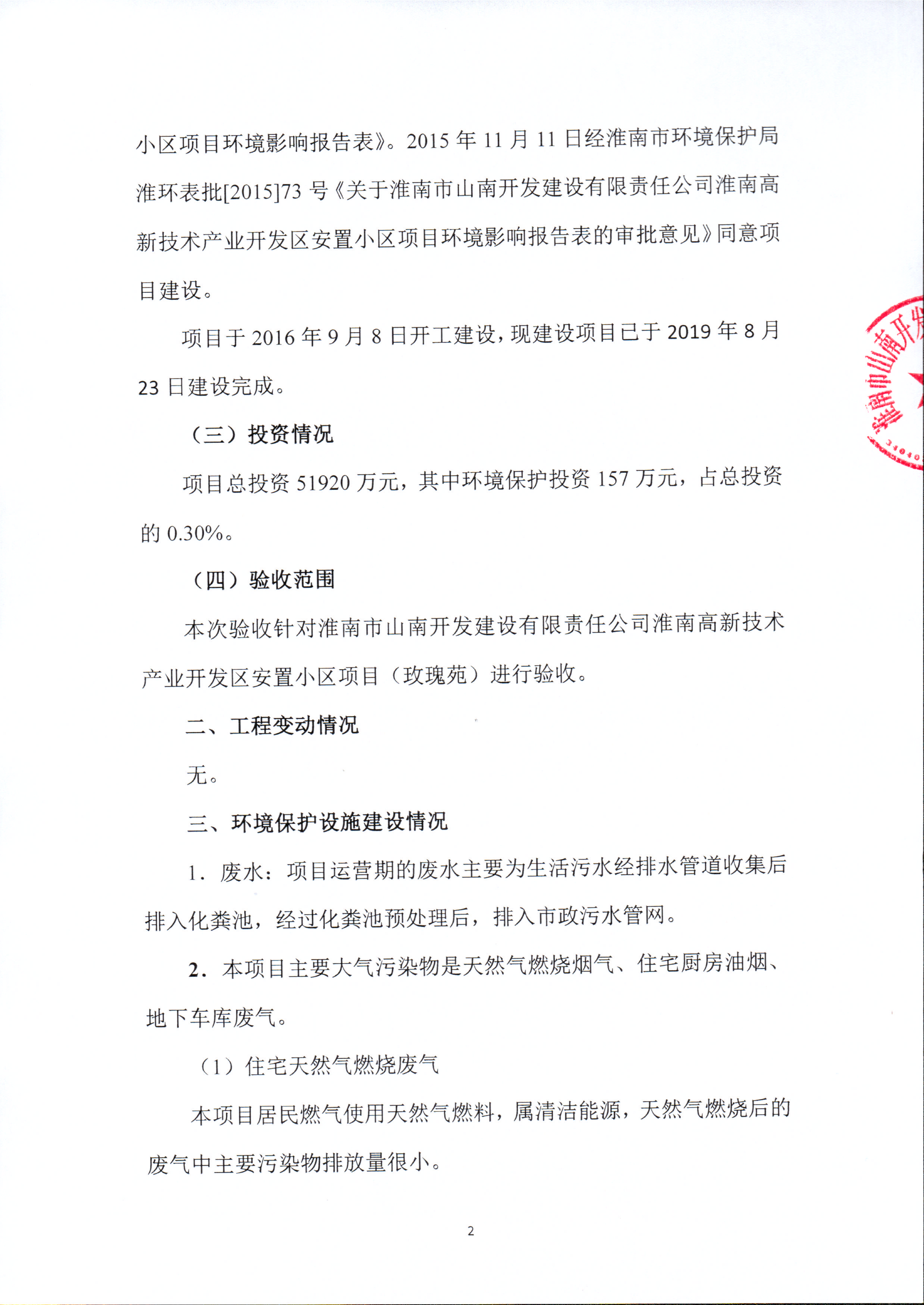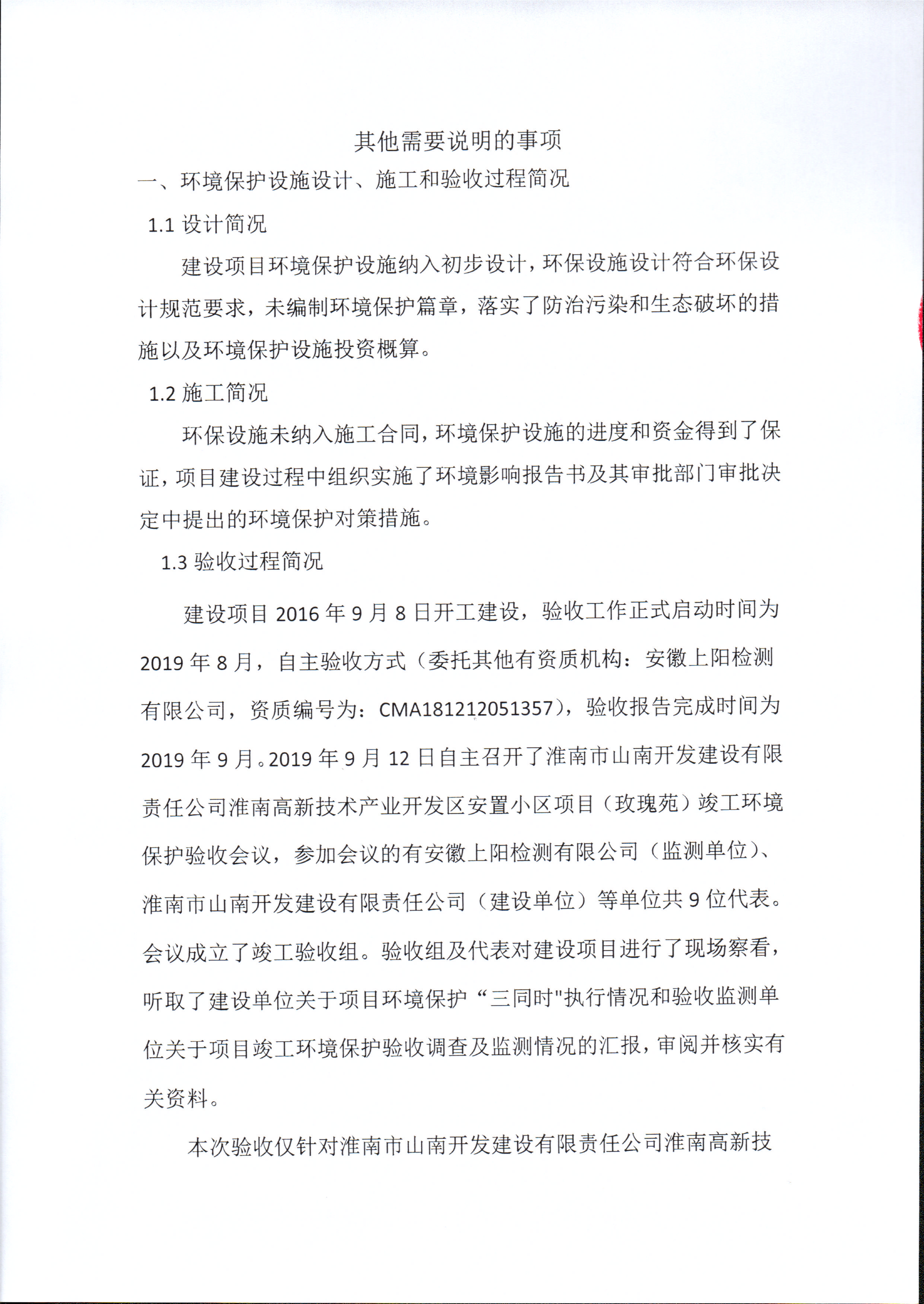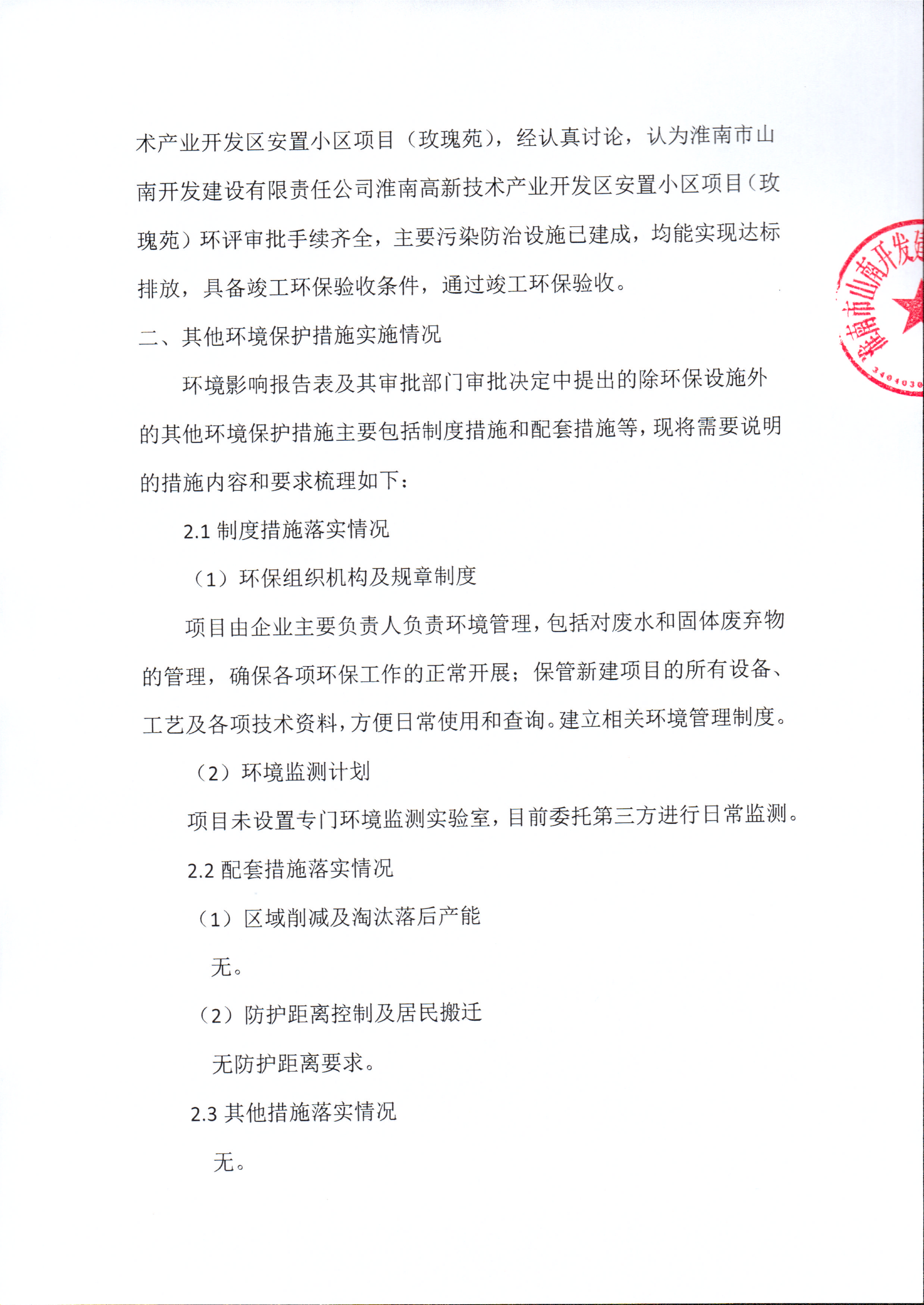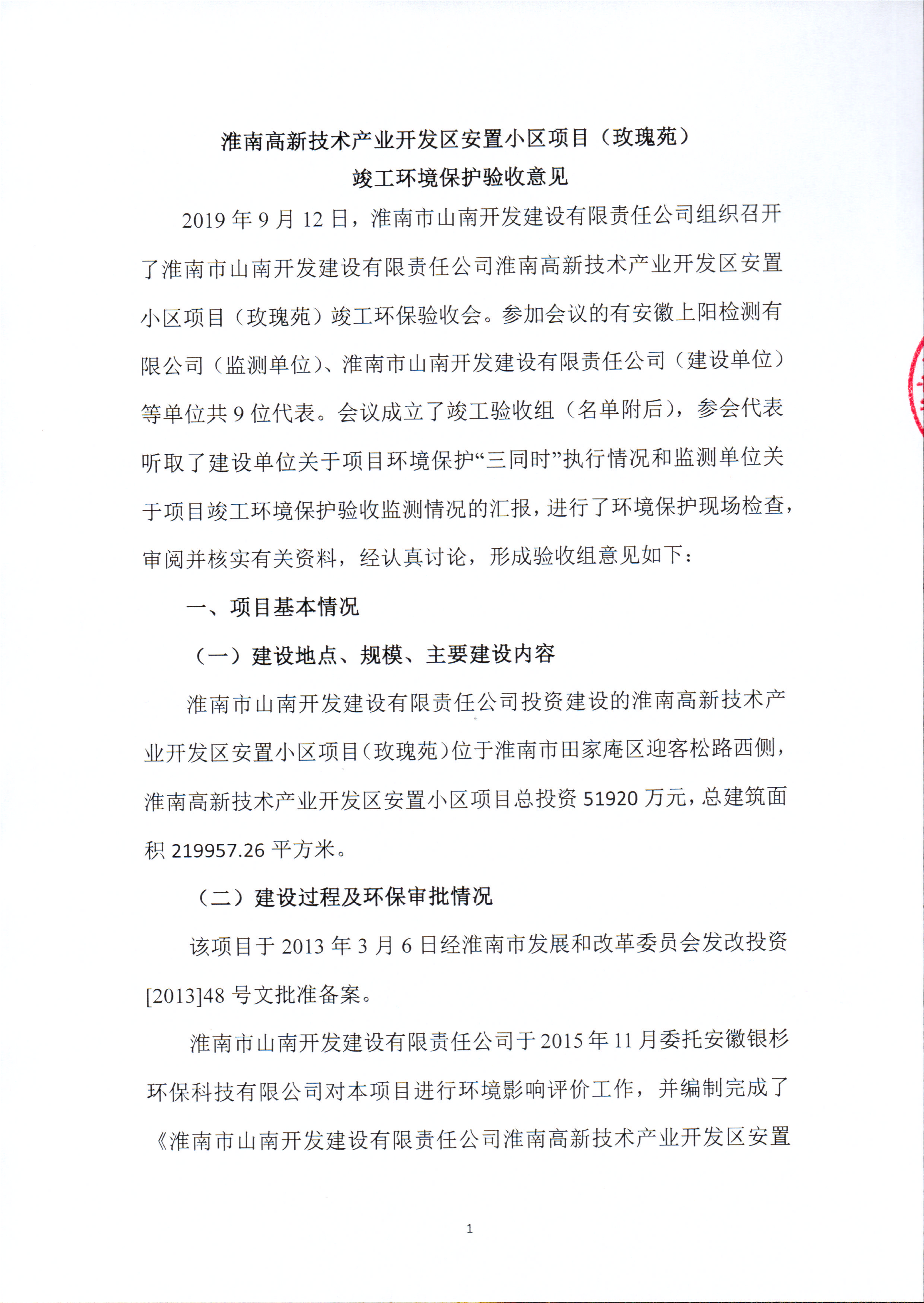 附件:1、淮南高新技术产业开发区安置小区项目(玫瑰苑)竣工环境保护验收意见