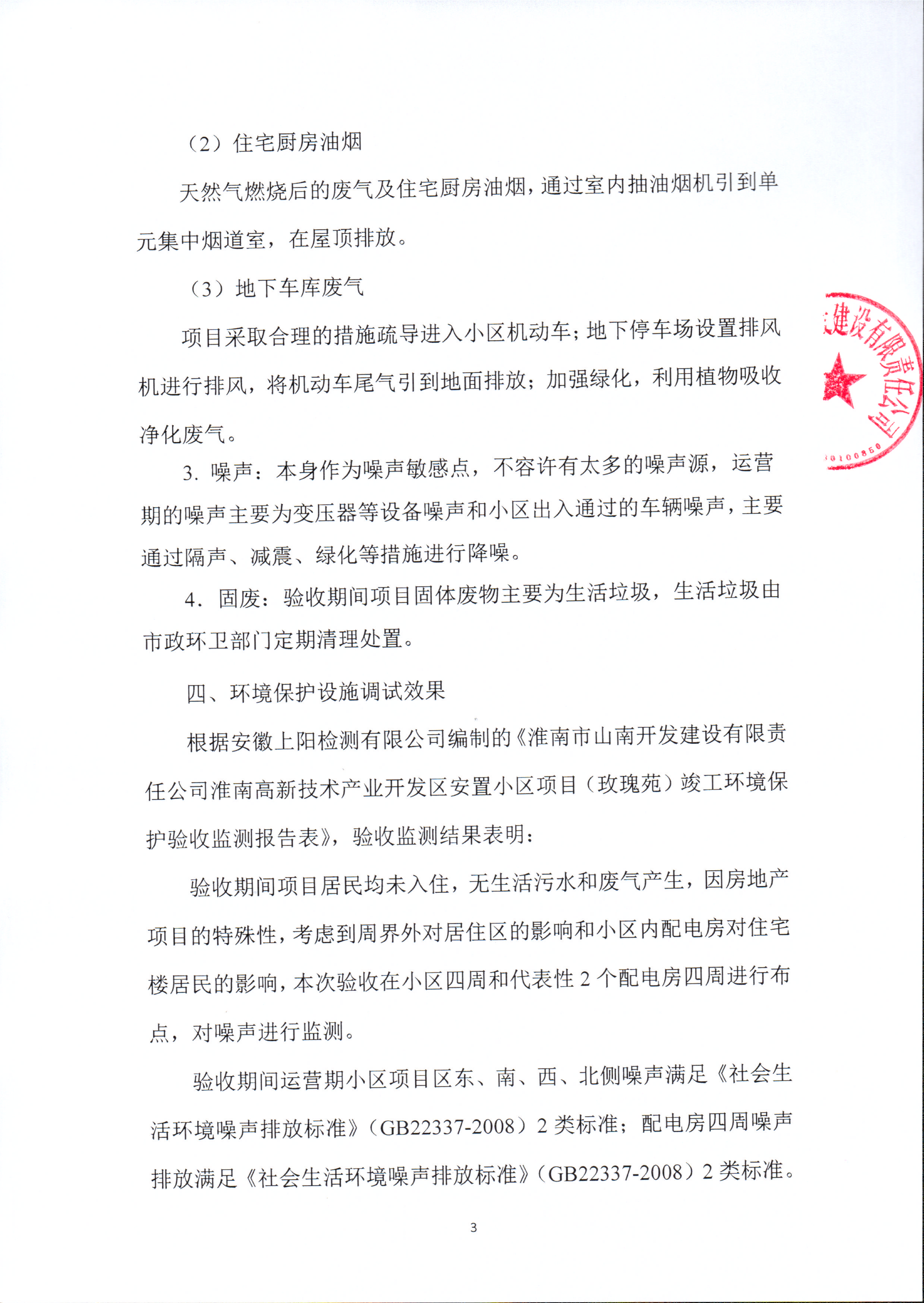 淮南市山南开发建设有限责任公司淮南高新技术产业开发区安置小区项目(玫瑰苑)竣工环境保护验收公示