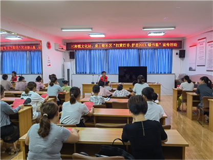 2023年7月起,三和镇在辖区内统一部署安排各村(居)开展“扫黄打非·护苗·绿书签”行动。各村(居)积极发动群众踊跃参与,“零距离”与未成年人互动,引导未成年人树立正确价值观。