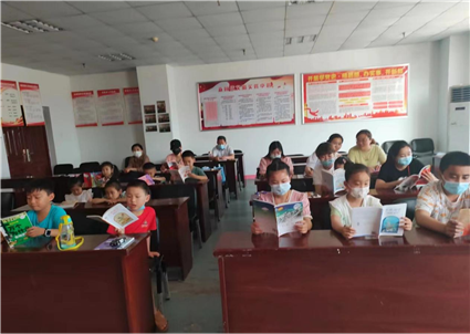 7月12日,岭南村邀请留守儿童参加“扫黄打非·护苗·绿书签”活动。工作人员带领孩子们开展读书活动,通过读书交流的方式,帮助未成年人分清正版书籍与盗版书籍,甄别不良网络信息。